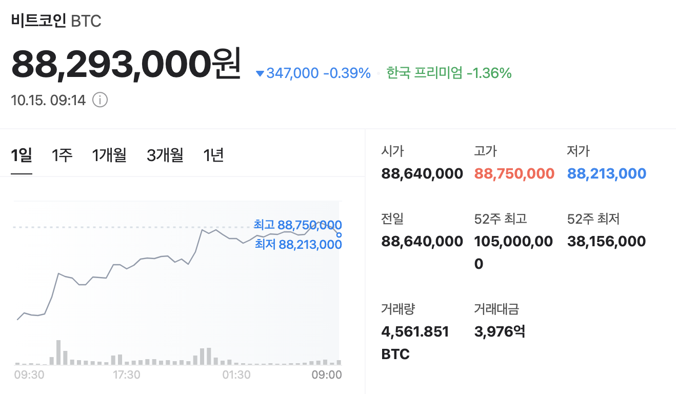 트럼프 관련주 중에서 10월 15일 기준 핫한 것은 비트코인이 아닌가 싶다.