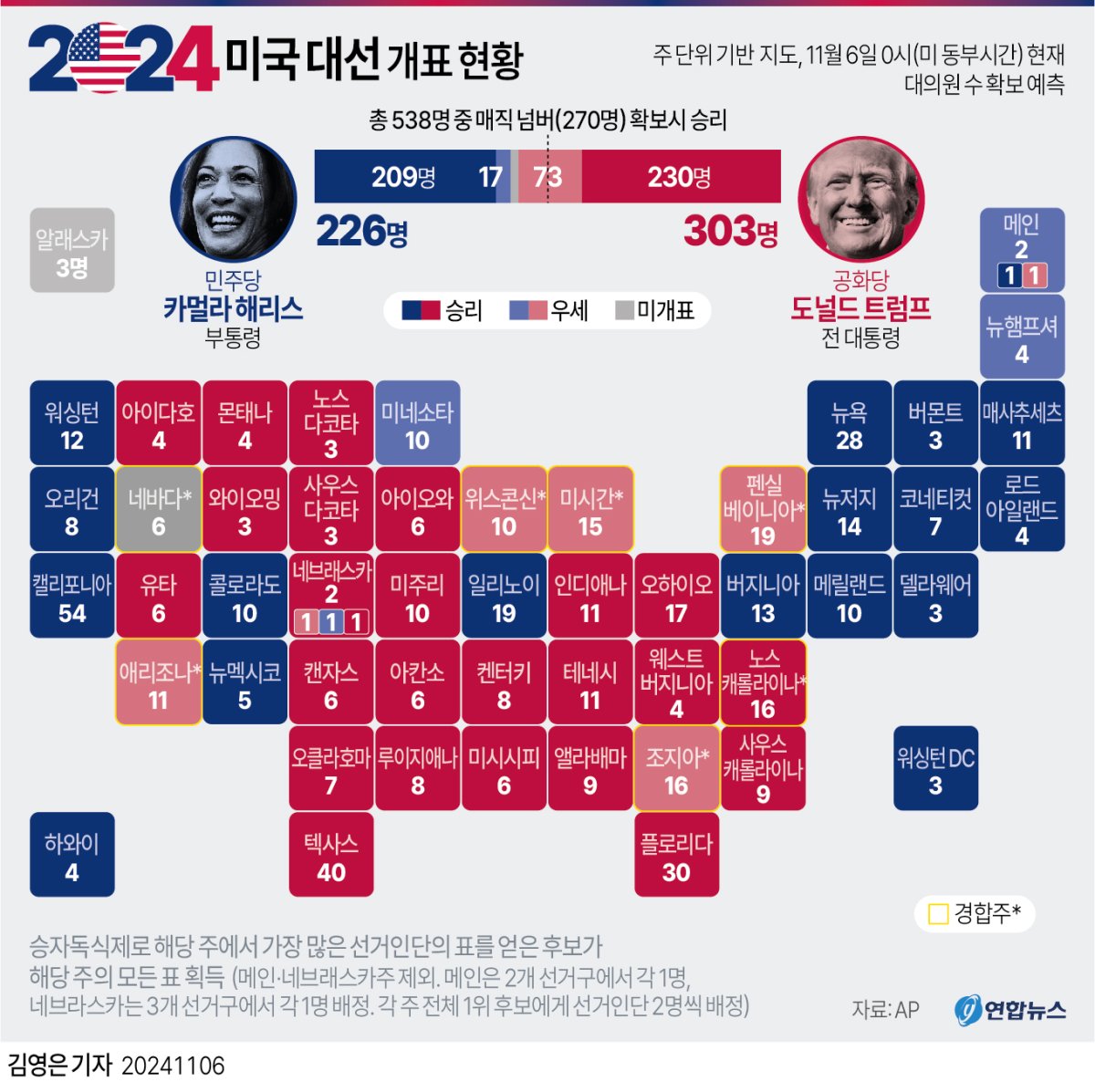 현재 2024 미국 대선 선거가 진행중이다. 언론에서는 현재 뉴스속도로 관련 내용을 보도 중이다.