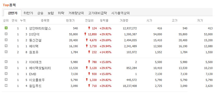 상한가 종목을 알아보자