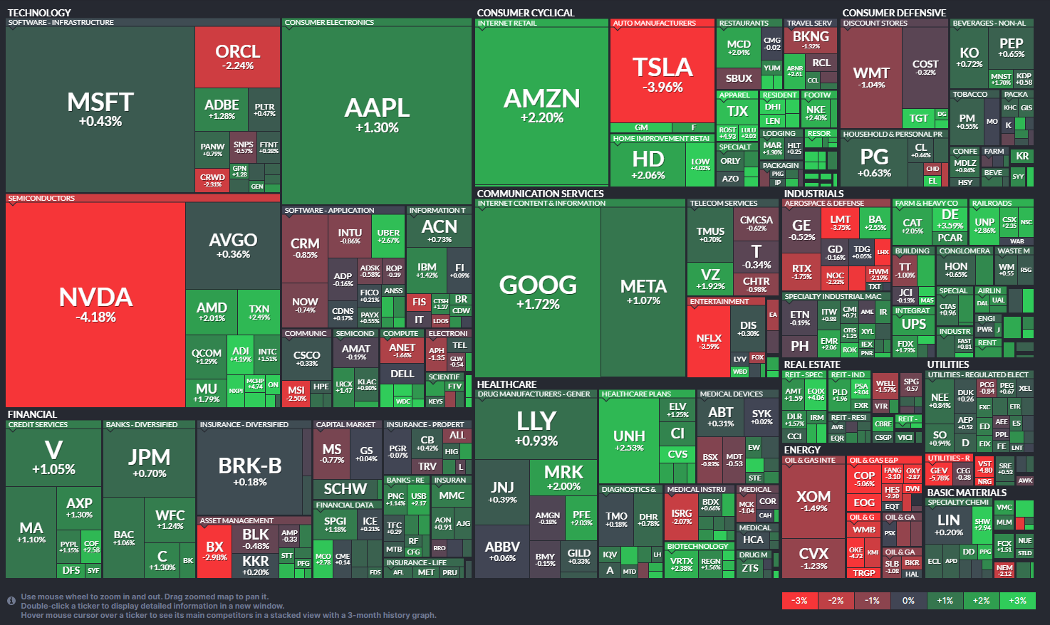 #다우존스 (+0.94%) #나스닥종합 (+0.26%) #S&P500 (+0.32%) #필라델피아반도체 (-0.60%) #달러인덱스 106.91 (-0.60%) #브렌트유 72.62 (-2.69%) #WTI유(USD/배럴) 69.09 (-3.02%) #미국02년물국채금리 4.264 (-2.40%) #미국10년물국채금리 4.265 (-3.29%) #비트코인(원/BTC) 132,650,000 (-2.53%) 아마존, 자체 AI 칩 개발 가속화…엔비디아 의존도 줄이기 박차 #아마존 (+2.08%) #엔비디아 (-4.18%) 미국 캘리포니아 주지사 "트럼프가 전기차 세액공제 없애도 주겠다" #리비안 (+13.04%) #루시드 (+2,86%) #테슬라 (-2.66%) #마이크로스트래티지 (-4.73%) 비트코인 54억 달러 추가 매수 향후 지속 투자 #스노우플레이크 (+2.38%) WSJ 데이터 시장 확대목표가 줄줄이 상향 #ARM (+2.71%) UBS "인공지능(AI) 붐 지속 투자의견 '매수' 의견 #TSMC (-2.63%) 내년 미국서 첫 이사회…트럼프 취임 한달 뒤