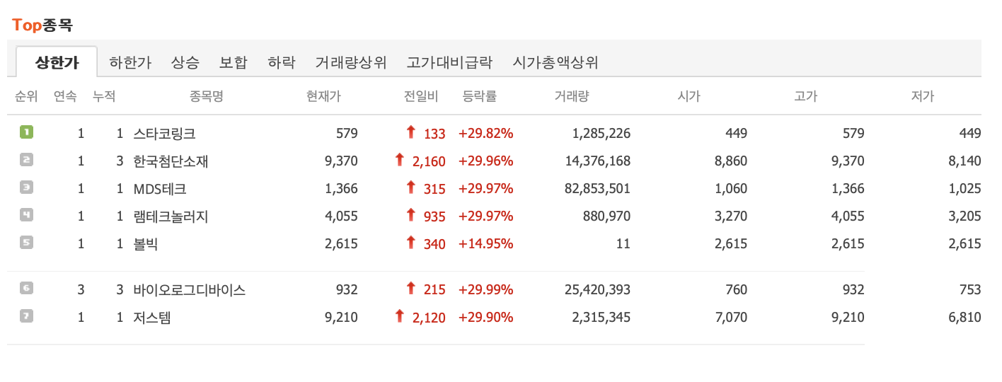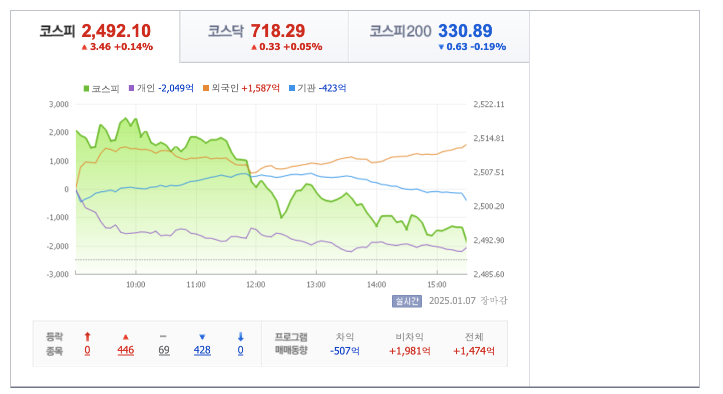 2025년 1월 7일, 한국 증시는 상승세를 보였다. 코스피 지수는 전일 대비 1.5% 상승하여 2,850포인트를 돌파하였고, 코스닥 지수는 2.2% 상승하여 950포인트를 기록했다. 주요 상승 요인으로는 글로벌 기술주 강세로 볼 수 있으며, 미국 증시에서 기술주 중심의 상승세가 이어지며, 국내 IT 및 반도체 관련 주식에도 긍정적인 영향을 미쳤더. 특히, 엔비디아의 주가 상승이 국내 반도체 업종에 대한 투자 심리를 자극했다는 분석이다. 1월 효과 기대감: 새해 초 투자 심리가 개선되면서 '1월 효과'에 대한 기대감이 증시 상승을 견인했다. 이는 투자자들이 연초에 주식 투자를 늘리는 경향을 반영한 것이다. 주요 상승 종목: 양자컴퓨터(암호) 테마 강세 지속 #바이오로그디바이스 (+29.99%): 양자컴퓨터 시장의 급성장 기대감에 힘입어 29.99% 상승하며 상한가를 기록했다. 이는 양자 보안 및 양자컴퓨팅 관련주로서의 부각이 원인으로 분석된다. #한국첨단소재 (+29.96%) #램테크놀러지 (+29.97%) CES 2025 기대 속 유리기판 테마 부각 #저스템 (+29.90%) CES 2025 기대 속 HBM 테마 부각 #MDS테크 (+29.97%) 엔비디아 '젠슨 황' CES 2025' 기조 연설 속 파트너사 부각 트럼프 "미국 선박 건조 재개해야…동맹국 이용할 수도" 도널드 트럼프 미국 대통령 당선인이 미국 해군과 조선업 재건을 위해 동맹국을 이용할 수 있다고 밝혔다. 트럼프 당선인은 취임 후 윤석열 대통령과 통화에서 조선업 협력을 언급한 바 있는데, 관련 분야 협력 의지를 재차 드러낸 것으로 보인다. ▶조선업 #HJ중공업 (+15.97%) #한화오션 (+12.60%) #삼성중공업 (+3.59%) #HD한국조선해양 (+2.67%) #HD현대미포 (+2.17%) #HD현대중공업 (+0.70%) ▶조선 기자재 #일승 (+8.70%) #KS인더스트리 (+7.39%) #HD현대마린솔루션 (+6.50%) #세진중공업 (+6.26%) #현대힘스 (+5.49%) #성광벤드 (+4.35%) 투자자 동향: 외국인 투자자들은 기술주와 반도체 업종을 중심으로 순매수를 보였으며, 기관 투자자들도 연기금의 매수세에 힘입어 시장에 긍정적인 영향을 주었다. 전망: 전문가들은 글로벌 경제 지표와 주요 기업들의 실적 발표에 따라 증시의 변동성이 있을 수 있으나, 현재의 상승 모멘텀이 당분간 지속될 가능성이 높다고 분석하고 있다.
