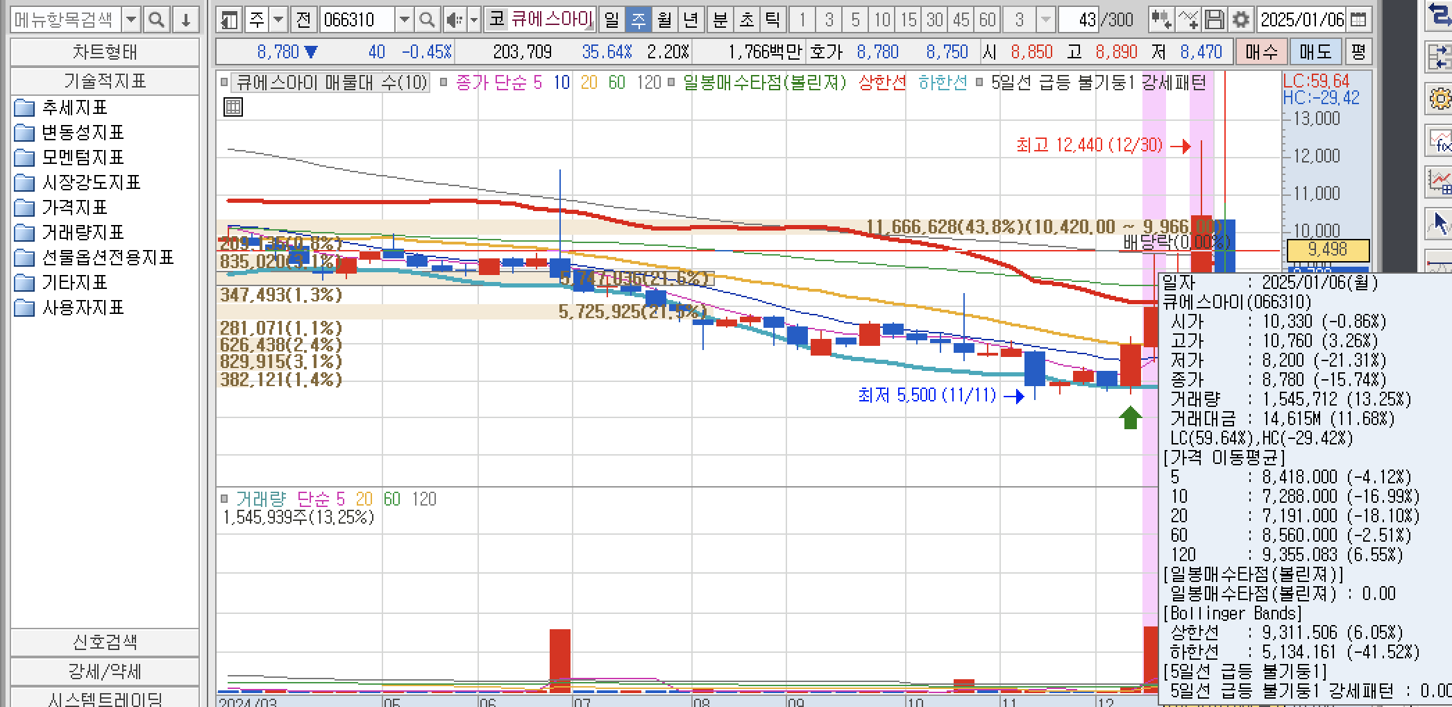 먼저, 큐에스아이부터 알아보자. 큐에스아이는 지난주에 큰폭을 상승을 했으나 1월 06일주차에는 상승을 하지 못했다. 단기과열종목으로 지정이 되면서 08일에 종료가 되었지만 시세를 받지 못했다. MMIC의 경우 양자컴퓨터 관련주로 52주 신고가를 도달했지만 상승을 하지 못했다.