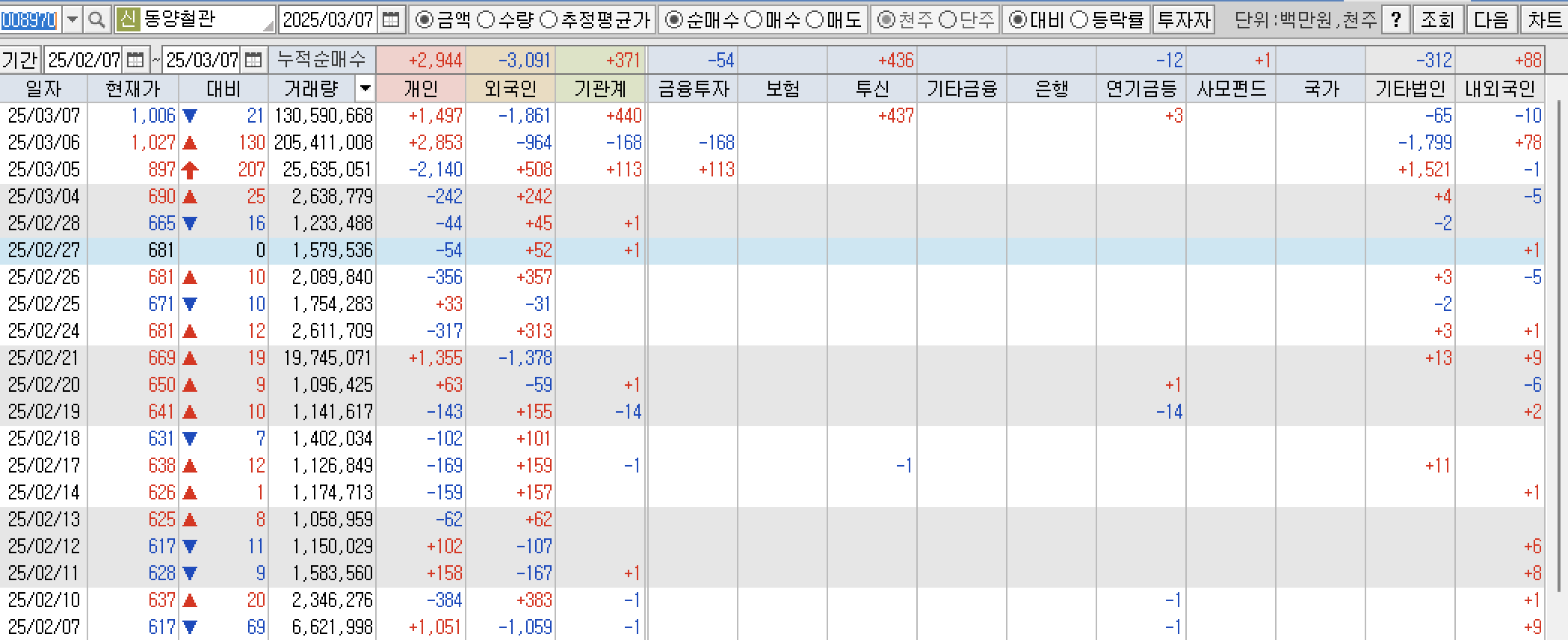 이 종목은 외국인/기관계/금융투자/기타법인들이 들어왔다고 볼 수 있습니다.