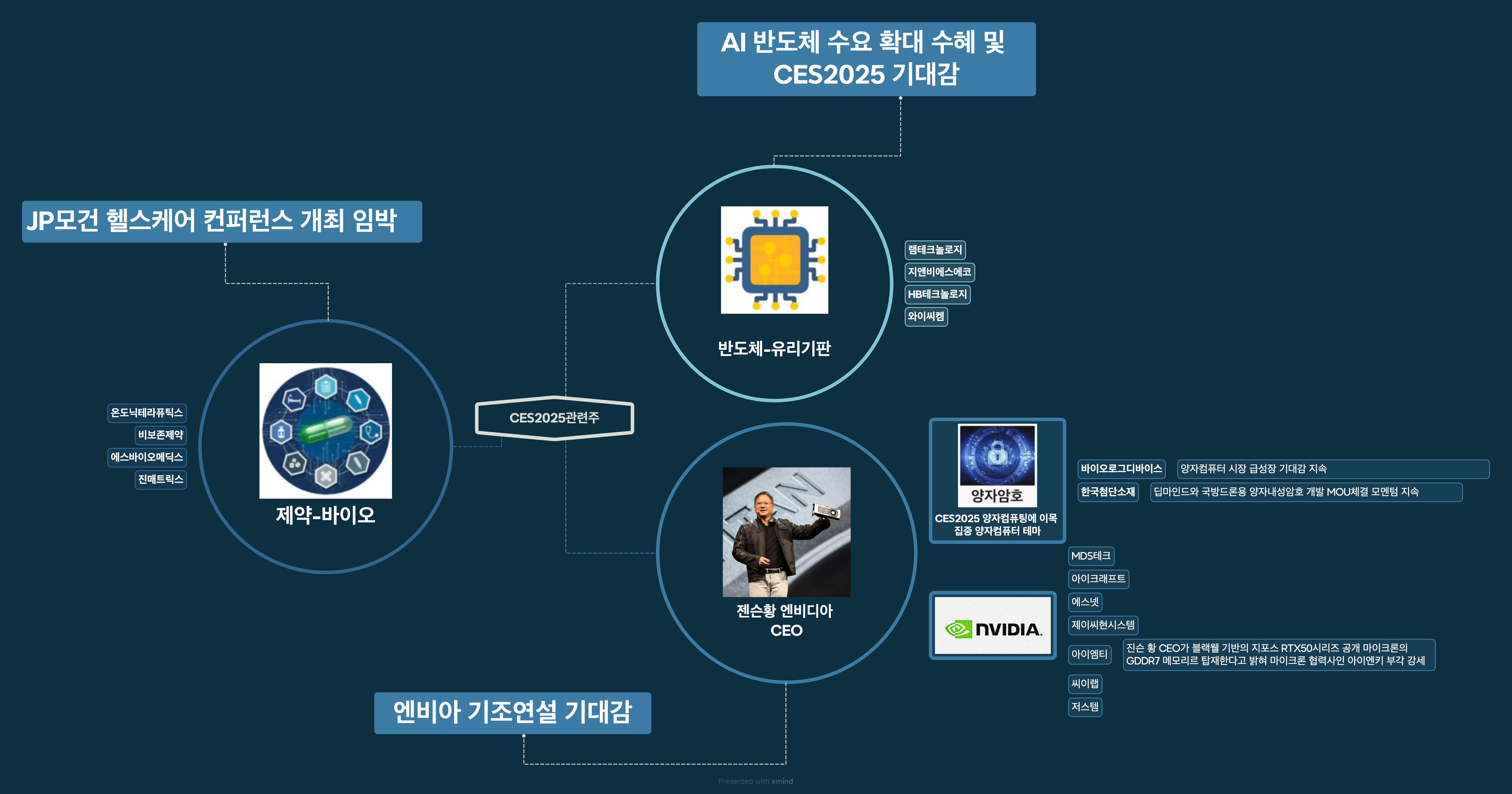 이번 CES2025 관련주에 관한 주식 맵으로 정리해 보았다.
