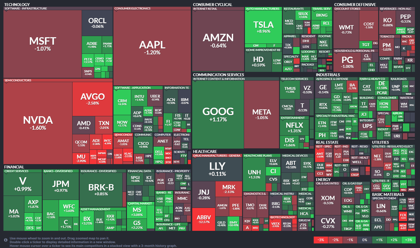 Top Gainers 3 -BRISTOL MYERS SQUIBB (+10.49%) -TESLA (+8.96%) -SALESFORCE.COM (+6.14%) Top Losers 3 -ABBVIE (-12.57%) -INTEL (-4.39%) -AMERICAN TOWER REIT (-2.83%) 기타 주요 종목 -아마존 (-0.64%) -테슬라 (+8.96%) -코카콜라 (-0.88%) -NVIDIA (-1.61%) -Apple (-1.20%) -Ford (+2.37%) -Microsoft (-1.07%) -메타 플랫폼스 (-1.05%) -유니티 소프트웨어 (-1.46%) -ASML Holding (+0.27%) -AT&T (-0.13%) -로블록스 (+4.12%) -Airbnb (+2.07%) -디즈니 (+1.86%) -리얼티 인컴 (+0.24%) -화이자 (-1.80%) -머크 (-2.13%) -길리어드 (+0.48%) -IBM (-0.07%) -에스티로더 (+1.08%) -사이먼 프라퍼티 (+1.30%) -보스턴 프라퍼티 (-1.13%) -구글 c (+1.17%) -Star Bulk (+1.14%) -Waste Management (-0.22%)