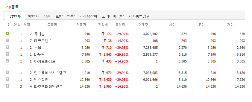 시초가 매매 및 전일 상한가, 전일 시간외 상승종목