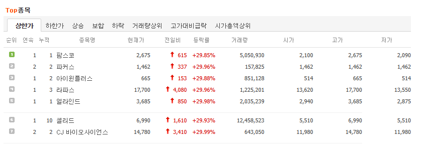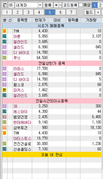 시초가 매매 종목, 전날 상한가종목, 전일시간외 관심 종목
