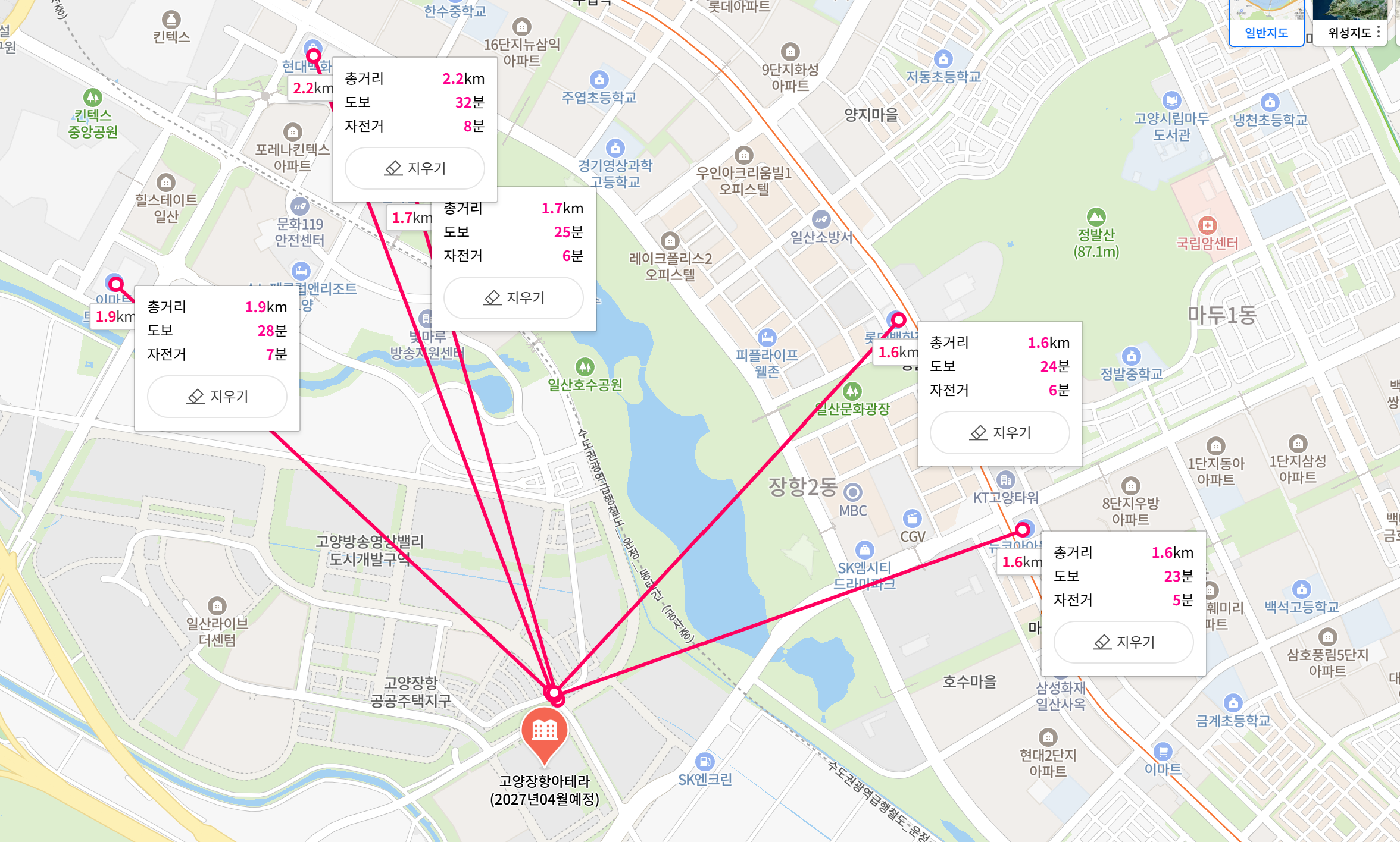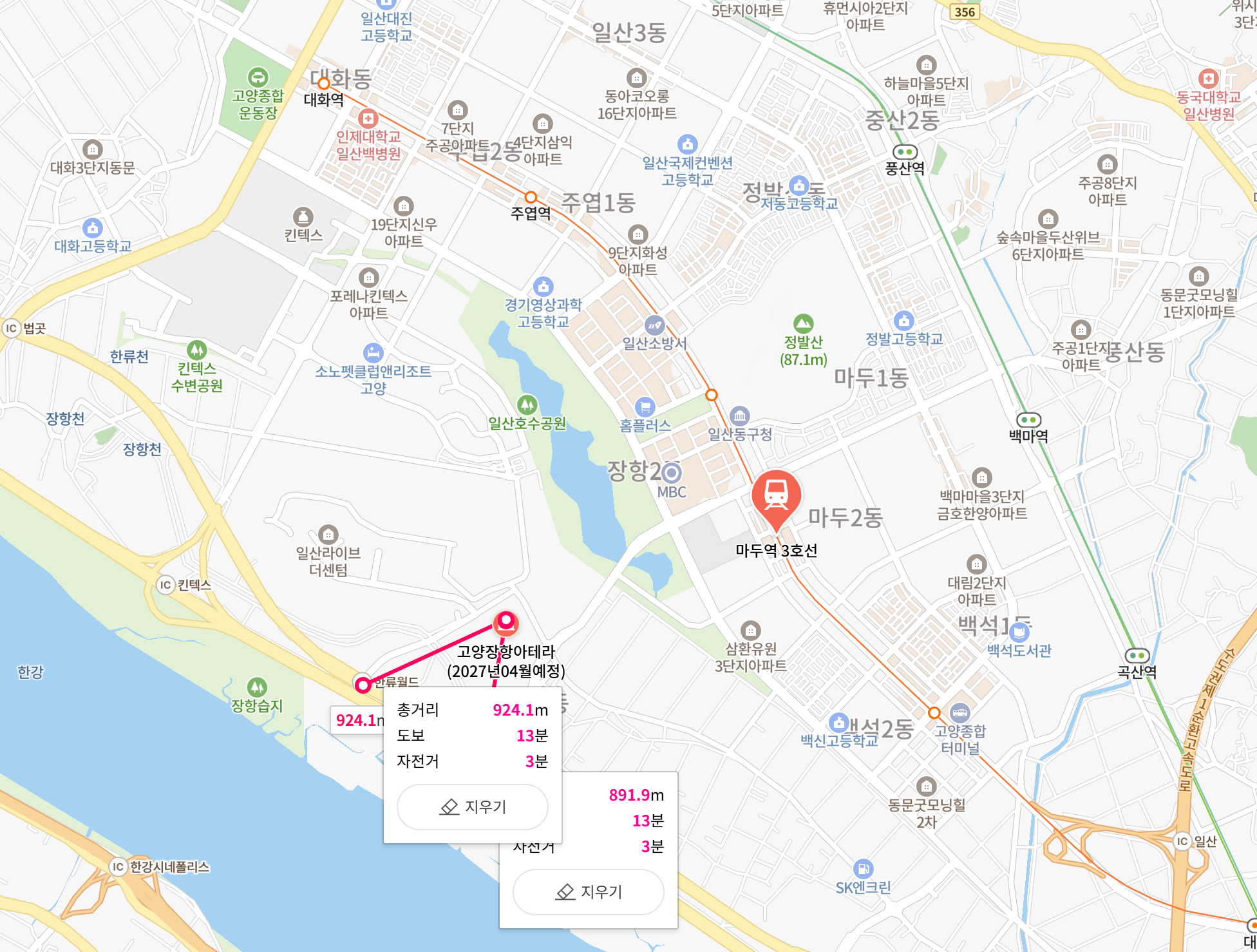 장항지구 내 상업시설 등 생활편의시설이 들어올 때까지는 일산 신도시나 킨텍스의 인프라를 이용해야한다. 현대백화점 킨텍스점, 롯데백화점 일산점, 킨텍스, 일산 백병원 등이 인근에 위치하고 있다. 위에 보듯이 거리가 그렇게 멀지 않은 곳에 모두 위치하고 있다. 자동차를 이용하면 30분쪽으로 모두 이용이 가능하다. 일산은 1기신도시였기에 인프라는 이미 다 형성되어 있다. 장항지구 내의 상업시설도 아마도 아테라가 준공이 완료되면 형성은 모두 되었을 것이니 이용의 불편은 없을 것으로 예상된다.