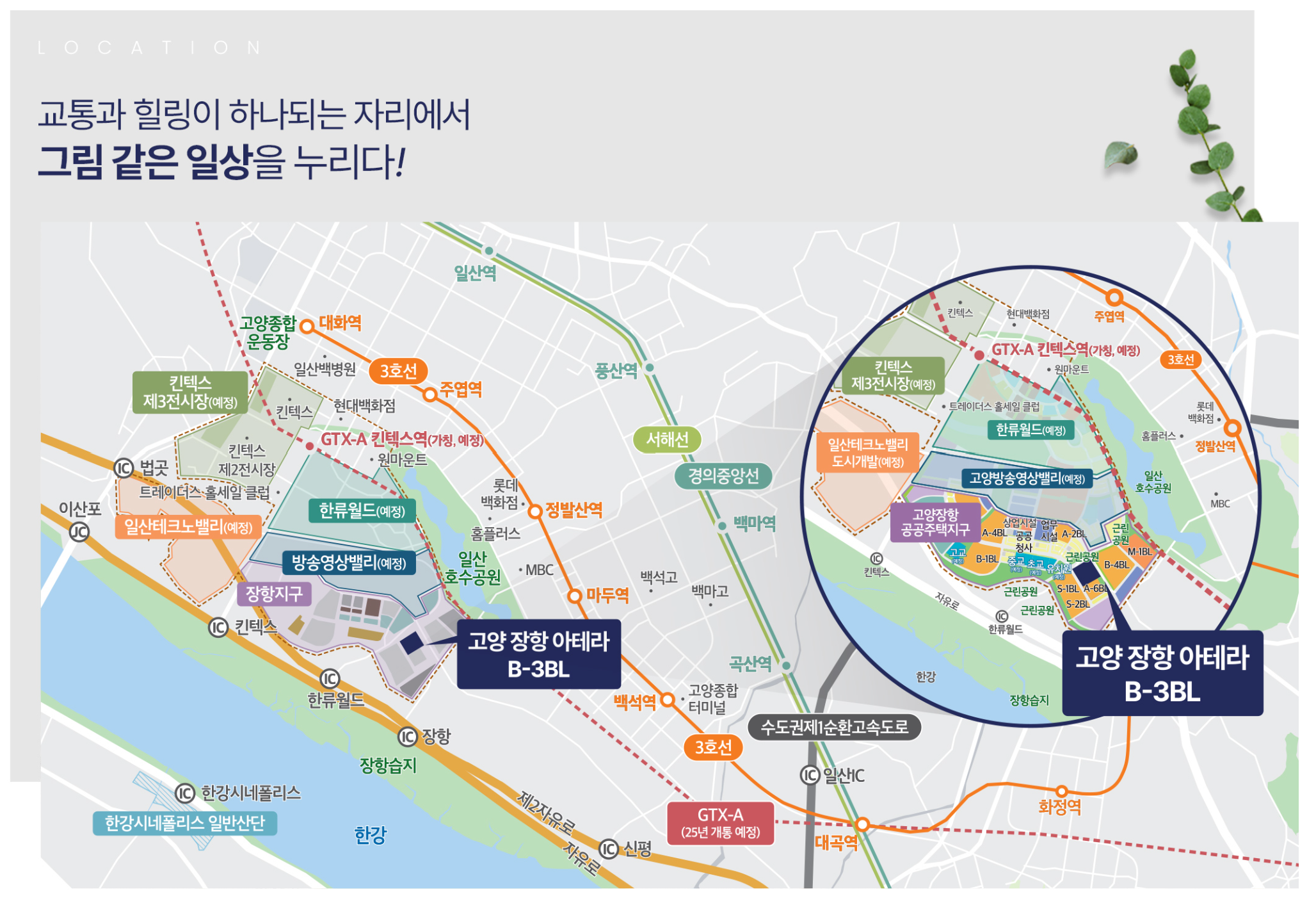 "아테라(Artera)"는 금호건설에서 새롭게 론칭한 주거 브랜드다. 지난주에 입주자 모집공고가 나온 청주 테크노폴리스 아테라와 7월 분양 예정인 검단 아테라자이 그리고 오늘 소개할 고양 장항 아테라 등이 예정되어 있다.