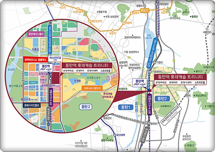 단지가 동탄역과 연결되어 있으며, 롯데백화점과도 연결되어 있다.