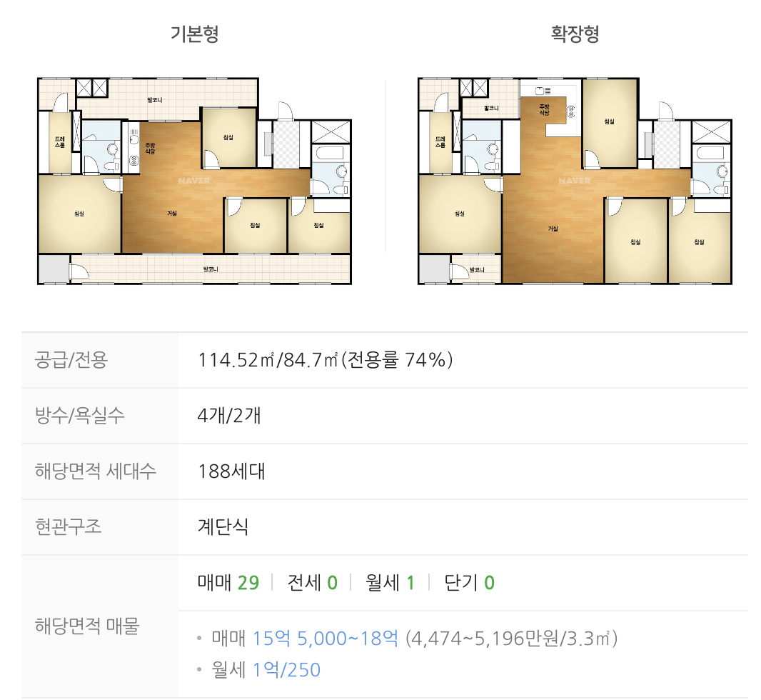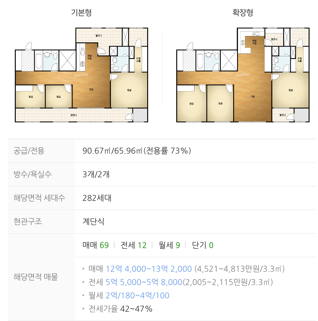 84타입 분양가 5.5억 현재 전세시세 -6억 수준, 102타입 분양가 6.7억 현재 전세시세 - 7억 수준