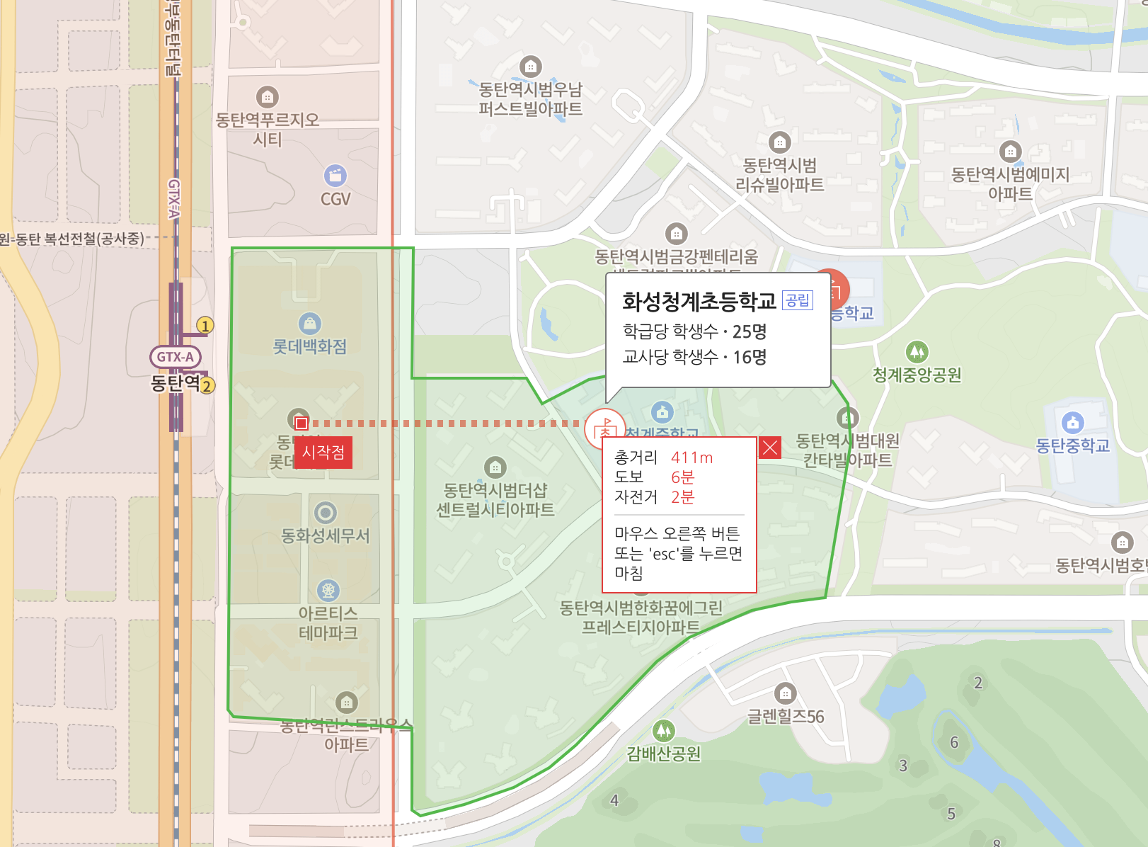 초등학교는 화성청계초등학교가 도보(6분)거리에 위치하고 있다. 아이들이 도보로 이용이 가능한데 큰길을 하나 건너야하는 단점이 있다.