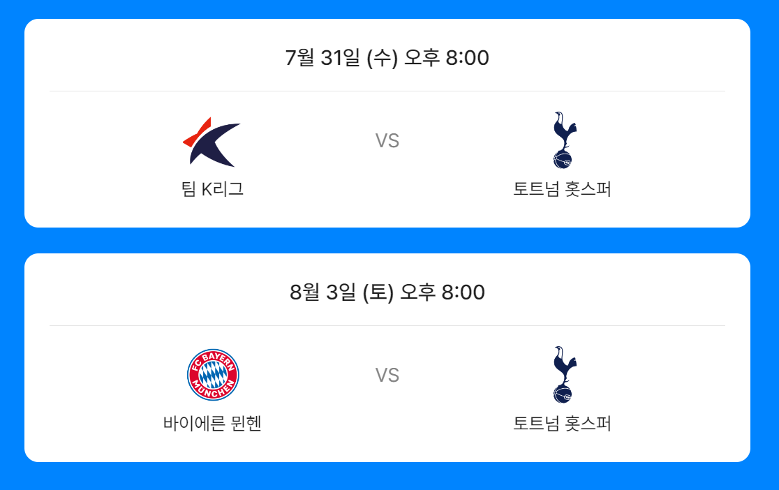 쿠팡플레이시리즈, 토트넘 vs 뮌헨 예매 방법