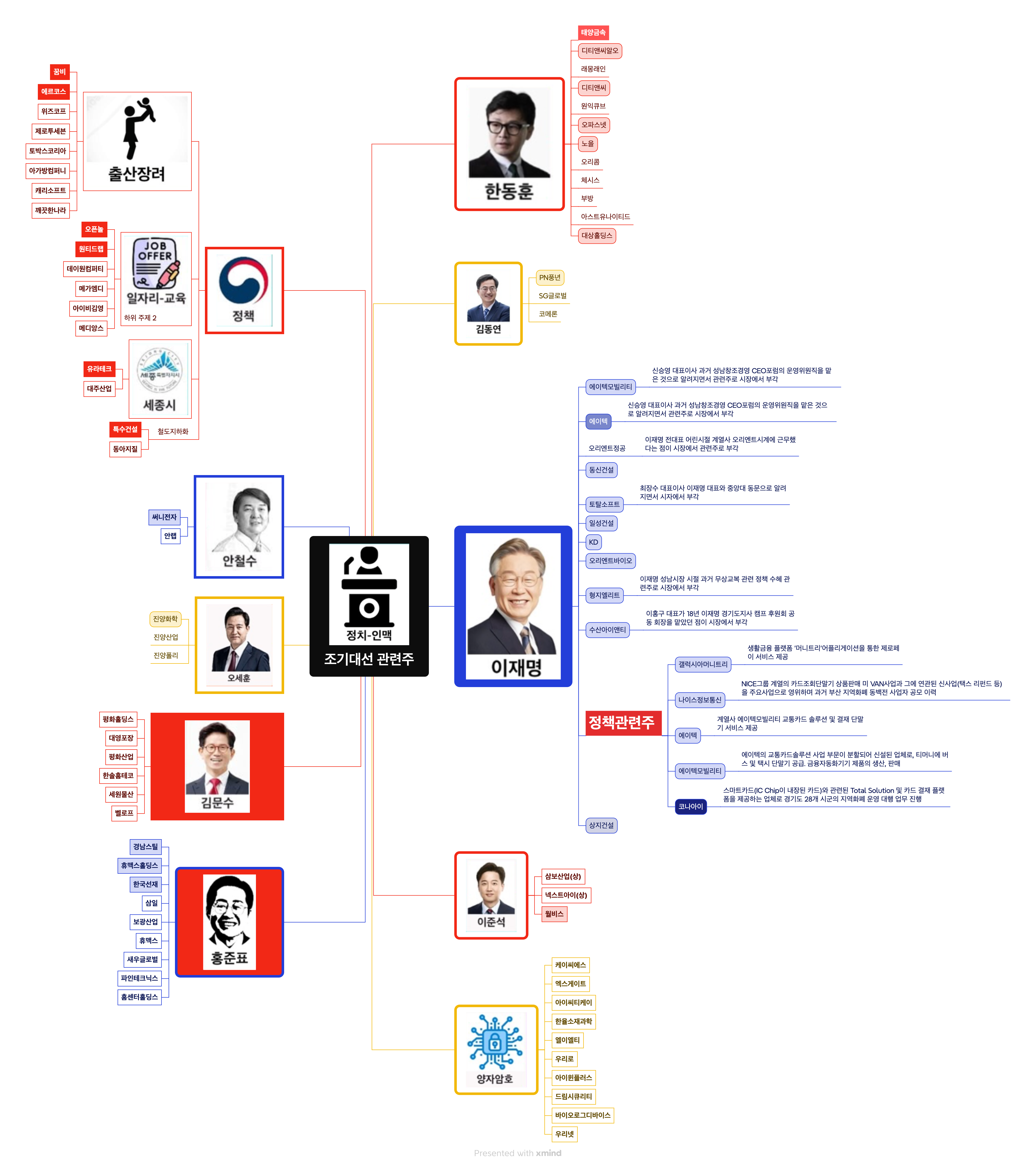 이외에도 오세훈 서울시장, 김동연 경기도지사, 이낙연 전 국무총리 등 주요 대선 주자들과 관련된 기업들의 주가 변동이 예상됩니다.