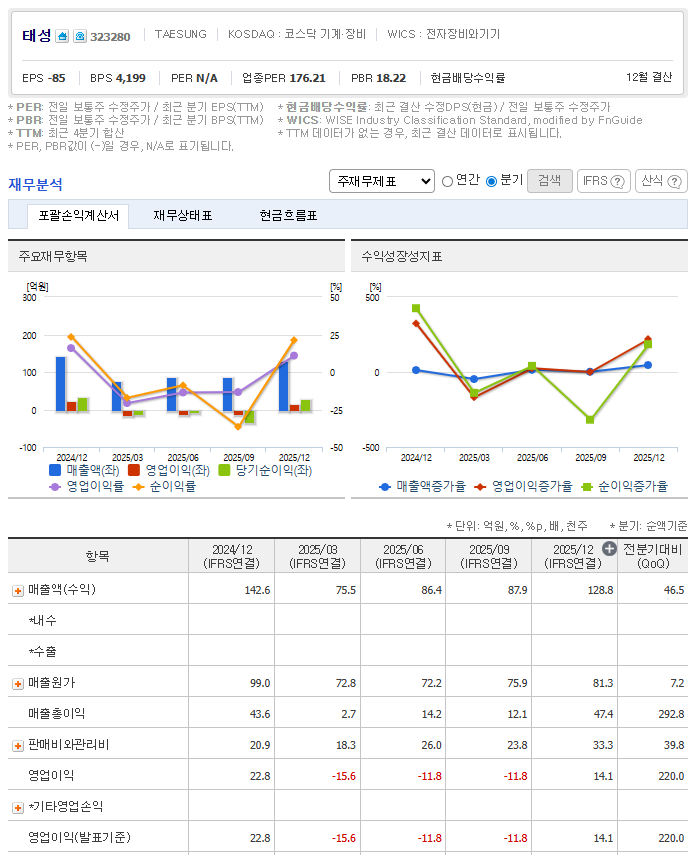 | PER | 측정 불가 | 적자 | 영업적자로 PER 계산 불가 |