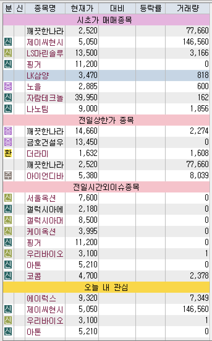 시초가 매매 종목은 무엇이있을까?