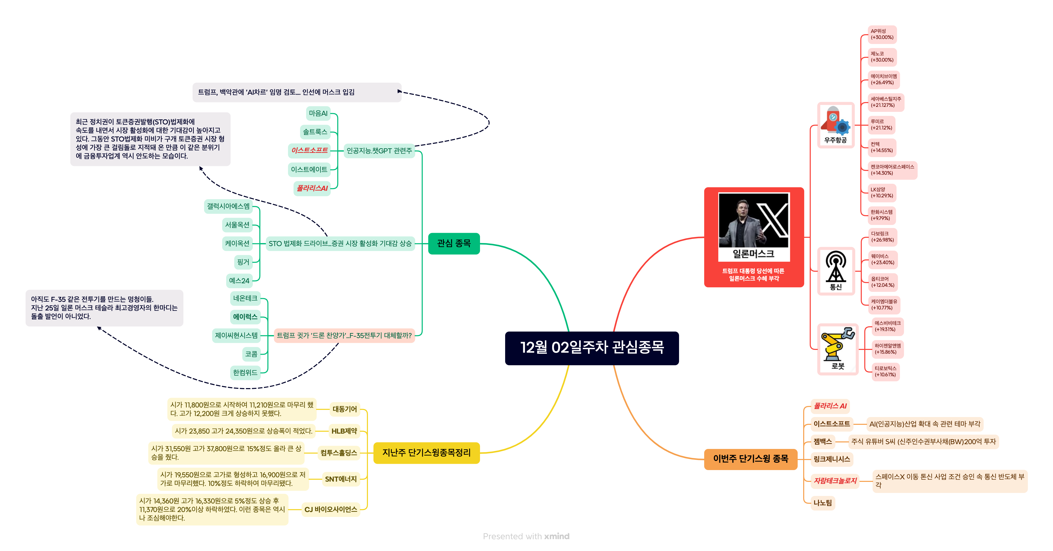 먼저, 폴라리스AI, 이스트소프트, 젬백스, 링크제니시스, 자람테크놀로지, 나노팀으로 선정이 되었다. 대부분의 종목들은 트럼프/머스크 관련주에 포함된다고 볼 수 있다. 지난 주에는 관련주들이 계속 상승을 했기 때문에 이번주에도 관심을 갖아봐야한다. 폴라리스AI의 경우 지난주에 수급이 들어왔기 때문에 이번 주에도 기대해 봐도 좋을 듯하다. 토탈 IT 서비스 전문 기업으로서 AI 기술에 특화된 서비스 제공 부각되면서 상승을 하였다. 매수가 시초가를 보고 1차 목표가 3,600원 / 손절가 2,400원를 보면 좋을 듯하다. 이스트소프트 종목은 단기과열종목(3거래일단일가매매) 지정된다. 그렇다면 상승은 제한적일 수 있다. 링크제니시스도 역시 단기과열종목(3거래일단일가매매)로 지정되었으며 지난주에 금요일에는 보합정도로 마무리했다. 자람테크놀로지는 차세대 시스템 반도체 설계 전문 기업이며 스페이스X 이동 통신사업 조건 승인 속 토인 반도체 부각되면서 상승하였다. 현재 일봉· 주봉 우상향 추세 전환하였으며, 추세전환이라 볼 수 있다. 이 종목은 계속 지켜보고 크게 상승을 할 수 있을 듯하다. 젬백스, 나노팀도 있으며 지켜보도록 하자.