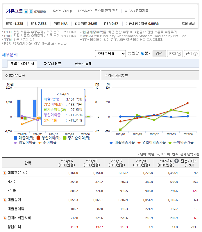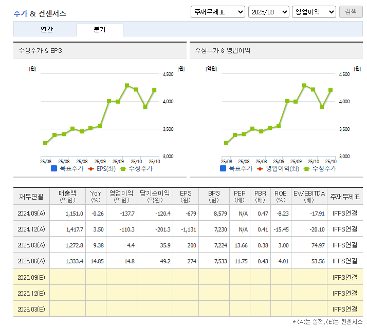 | PER | 분기/연도·계산 방식에 따라 상이(음수 또는 낮은 배수 표기됨) |
