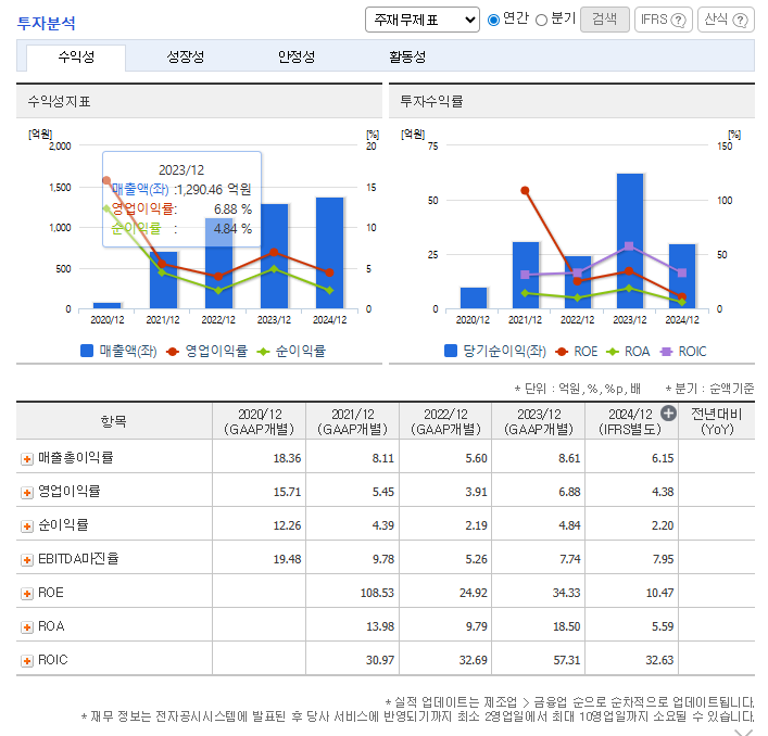 실적 한줄평: 영업이익이 매년 40~50%씩 성장 중입니다. 현재 주가 33,850원은 성장성 대비 매우 저평가된 구간으로 보입니다.