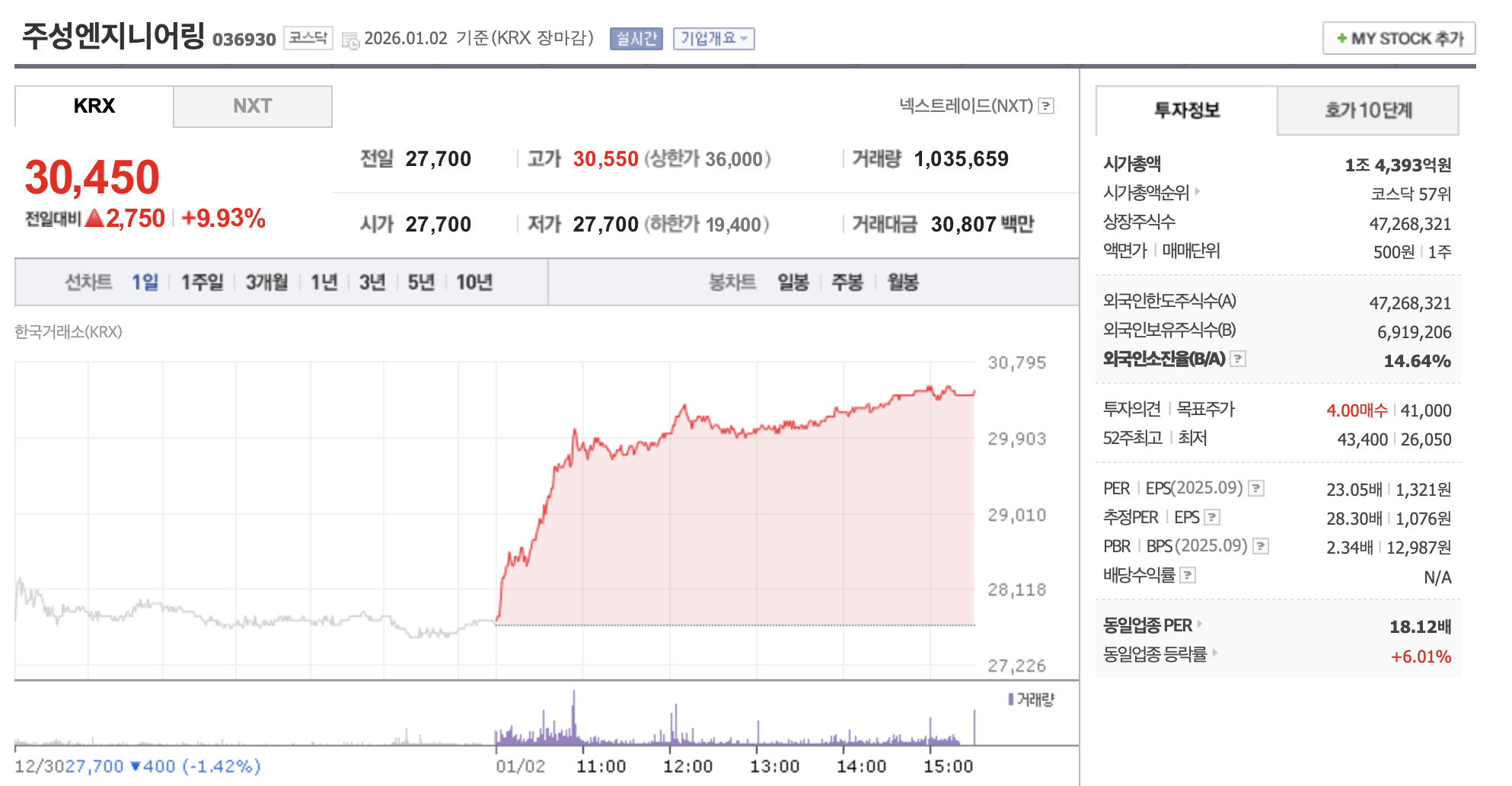 현재가: 30,450원 (▲9.93%)
