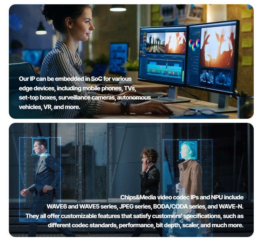 - 주력 제품: 비디오 코덱 IP, 이미지 처리 NPU, AI ISP(영상 화질 개선).