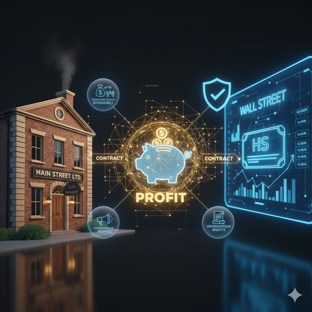 주식은 기업과 투자자 사이의 '계약'으로 묶인 권리입니다. 회사가 돈을 버는 것(메인 스트리트)과 주가가 오르는 것(월스트리트)은 별개처럼 보이지만, 결국 '이익'이라는 끈으로 연결됩니다.