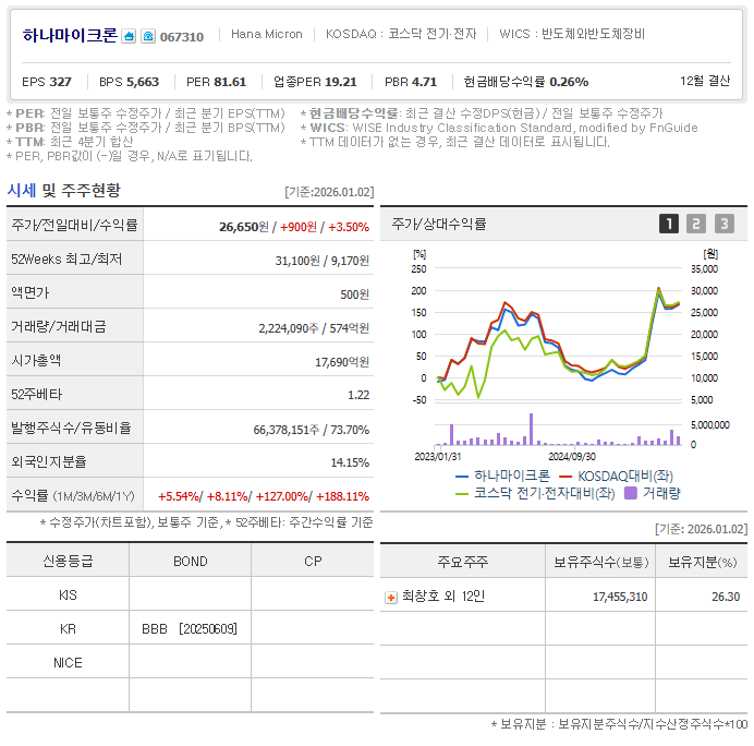 - 2026년 1월 현재: AI 반도체 수요 폭증에 따른 '후공정 외주화' 트렌드의 최대 수혜주로 부각.