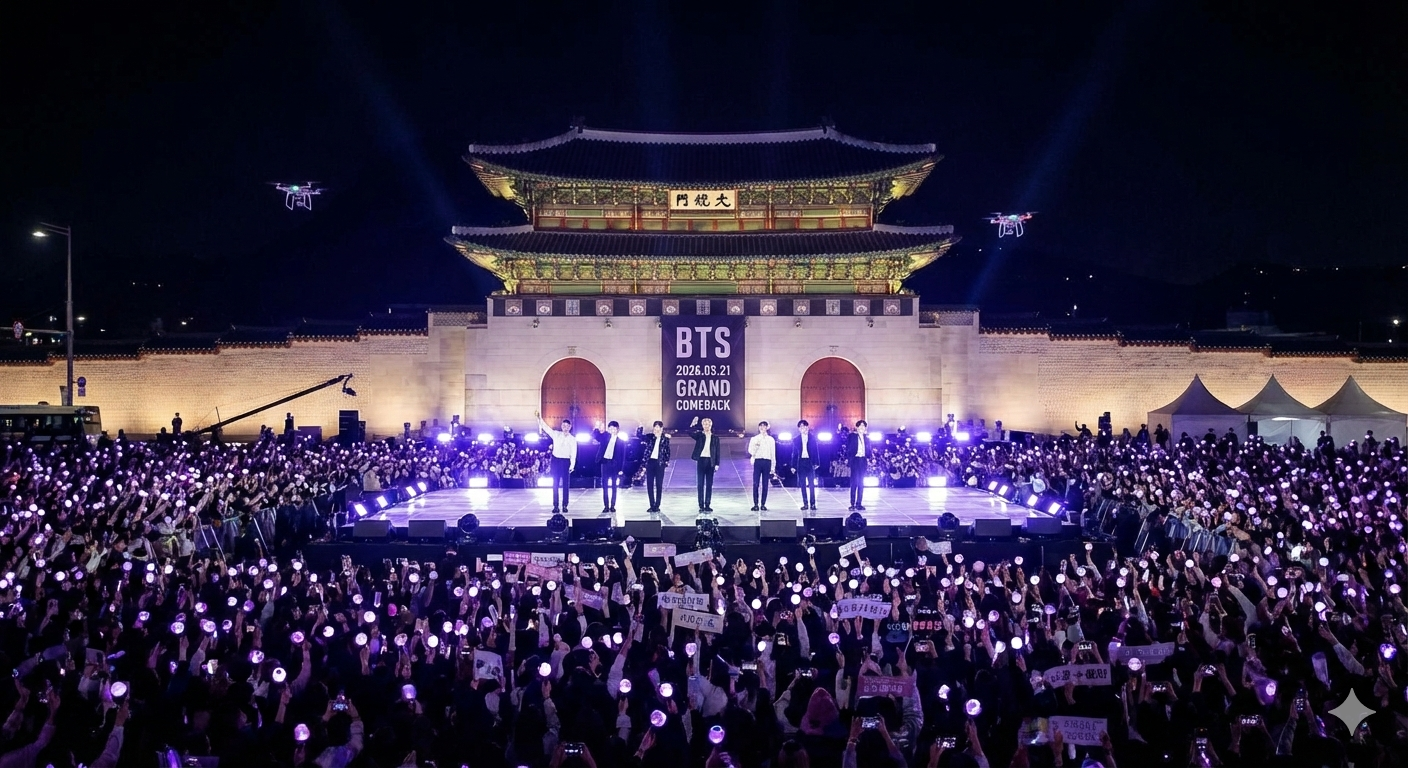 - ✅ BTS 3월 완전체 컴백 및 광화문 공연: 3월 20일 신보 발매와 21일 광화문광장 대규모 컴백쇼가 확정되었습니다. 이는 6년 만의 완전체 활동으로 글로벌 팬덤의 결집력이 극대화되는 시점입니다.