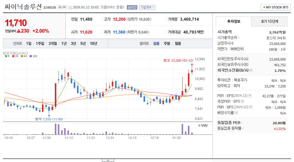 안녕하세요! 오늘은 2025년 성공적으로 코스닥에 입성한 후, 단순 디자인하우스를 넘어 고부가가치 센서 전문 기업으로 도약 중인 싸이닉솔루션(234030)에 대해 심층 분석해 보겠습니다.