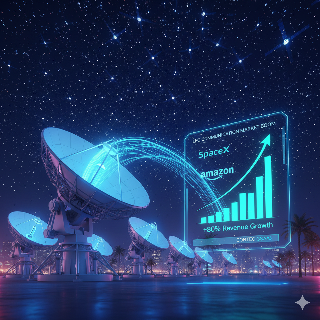 - 저궤도 위성(LEO) 통신 시장 폭발: 스페이스X, 아마존 등 글로벌 기업들의 저궤도 위성 발사 급증으로 컨텍의 지상국 서비스(GSaaS) 매출이 전년 대비 80% 이상 성장했습니다.