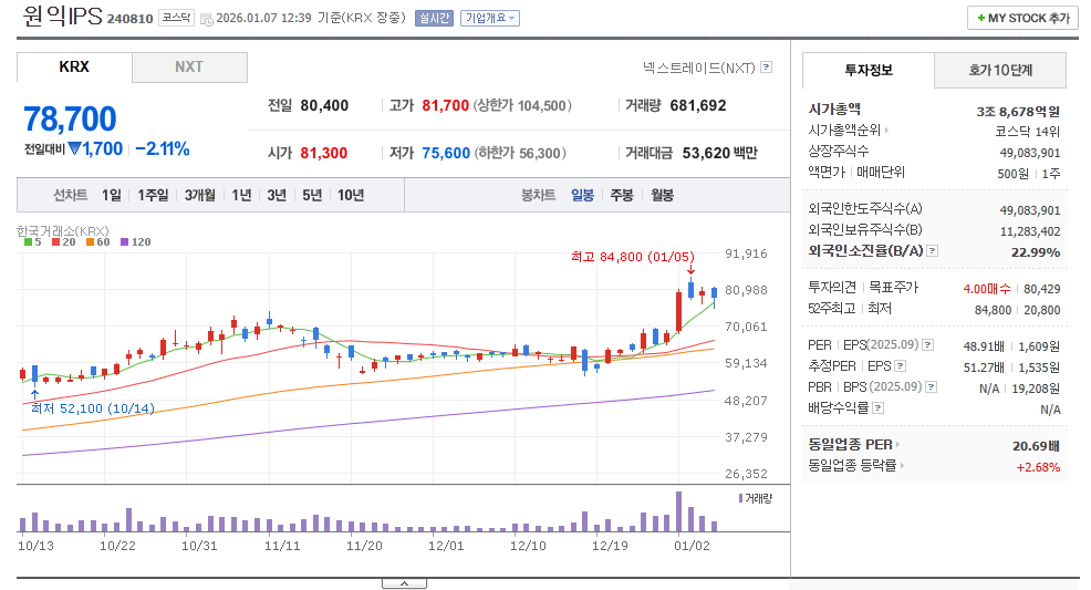 🏗️ 원익IPS(240810) 종목 분석: 반도체 장비 국산화의 상징, ‘빅 사이클’의 선봉장