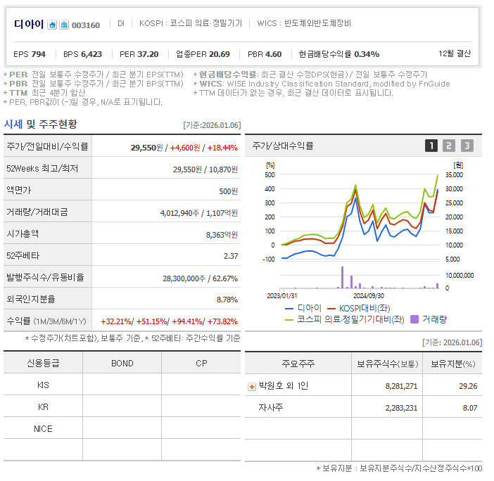 안녕하세요! 오늘은 최근 52주 신고가를 경신하며 반도체 장비주 섹터에서 가장 뜨거운 관심을 받고 있는 디아이(003160)에 대해 심층 분석해보겠습니다.