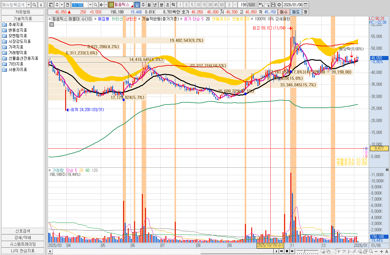 - 주가 추이: 바닥권 대비 100% 이상 상승, 강력한 정배열 추세