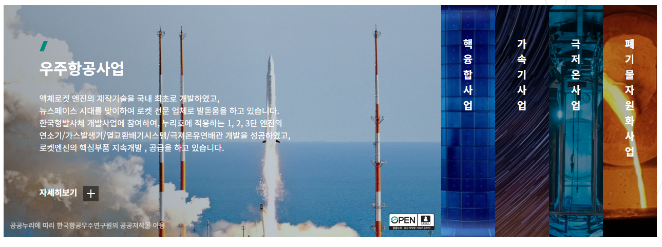 - 주력 제품: 로켓 연소기 및 가스발생기, 핵융합 내부 보호장치(Divertor), 초전도 가속기 장치, 플라즈마 토치.