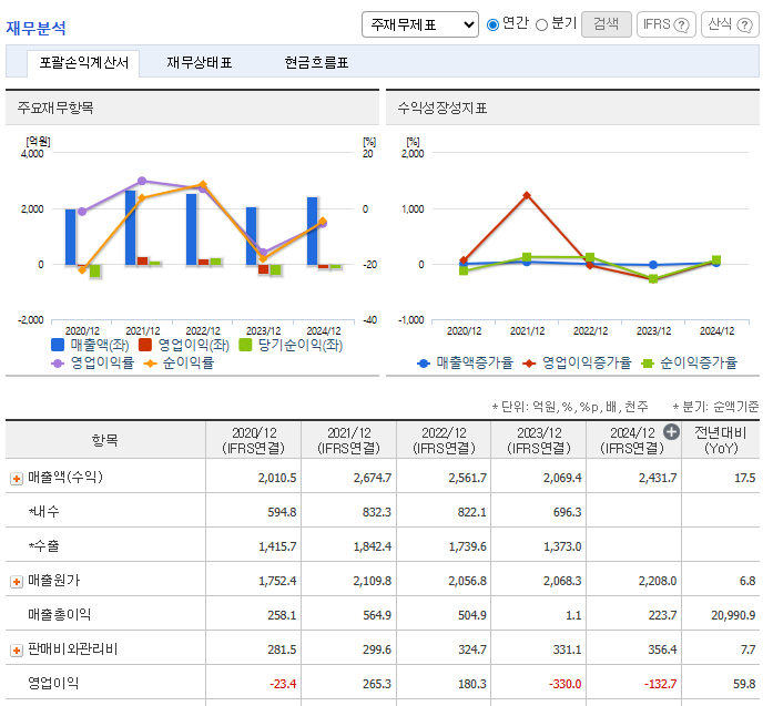 | 매출액 | 약 2,431억 | 약 2,296억 | 약 2,750억 |