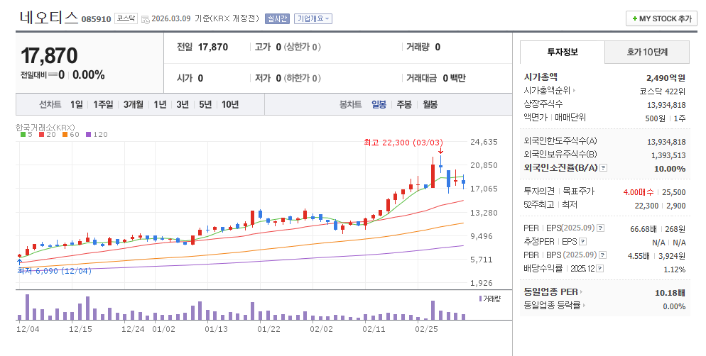 2026년 3월 7일 종가 17,870원을 기록한 네오티스는 단순한 부품 제조사를 넘어 AI 인프라 확장에 따른 핵심 소모품 수혜주로 재평가받고 있습니다. 본 포스팅에서는 네오티스의 비즈니스 모델과 2026년 실적 전망, 그리고 투자 전략을 심층 분석합니다.