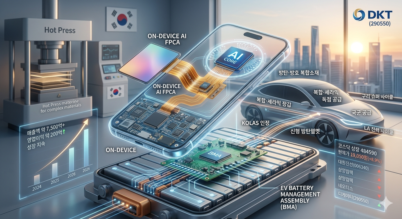 2026년 3월 11일 현재, 디케이티는 전일 대비 8.9% 상승한 19,050원을 기록하며 박스권을 돌파하는 강한 흐름을 보이고 있습니다. 단순 FPCB 어셈블리(FPCA) 기업을 넘어, 스마트폰의 AI 탑재와 전기차(EV) 부품 확장에 따른 실적 퀀텀 점프가 기대되는 시점입니다.