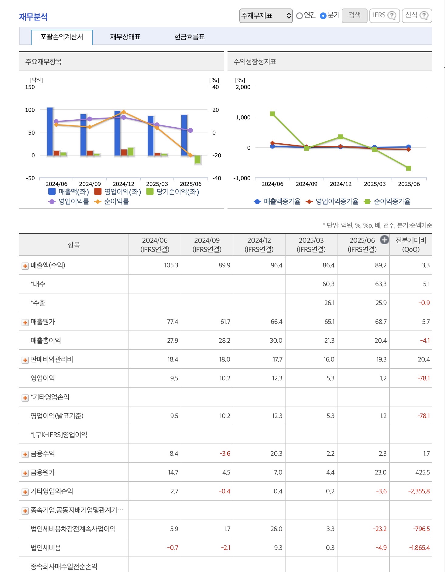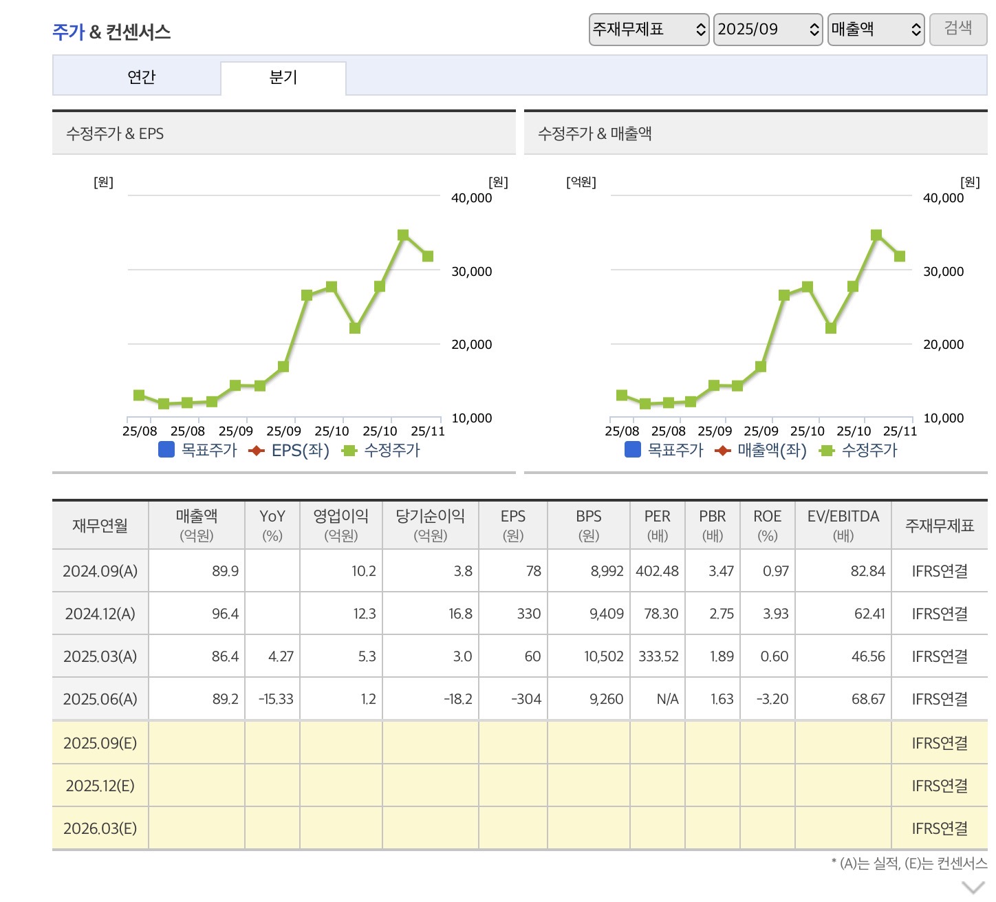 그러나 현재 PER 53배, PBR 3.6배로 고평가 상태이며, 실적 대비 주가 부담이 존재합니다.