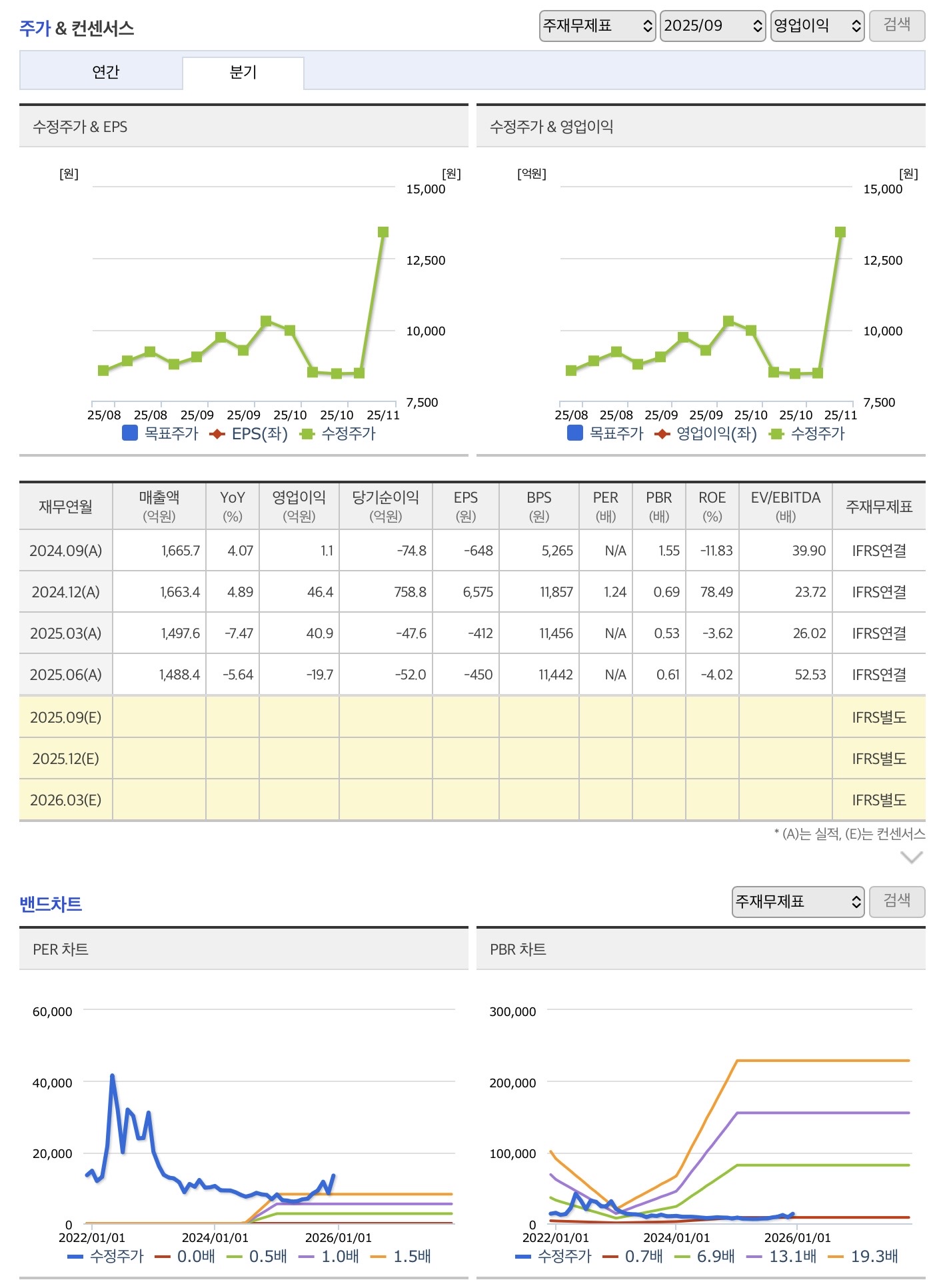 | 영업이익 | 적자 지속 | EPS 마이너스로 PER 산출 불가 |