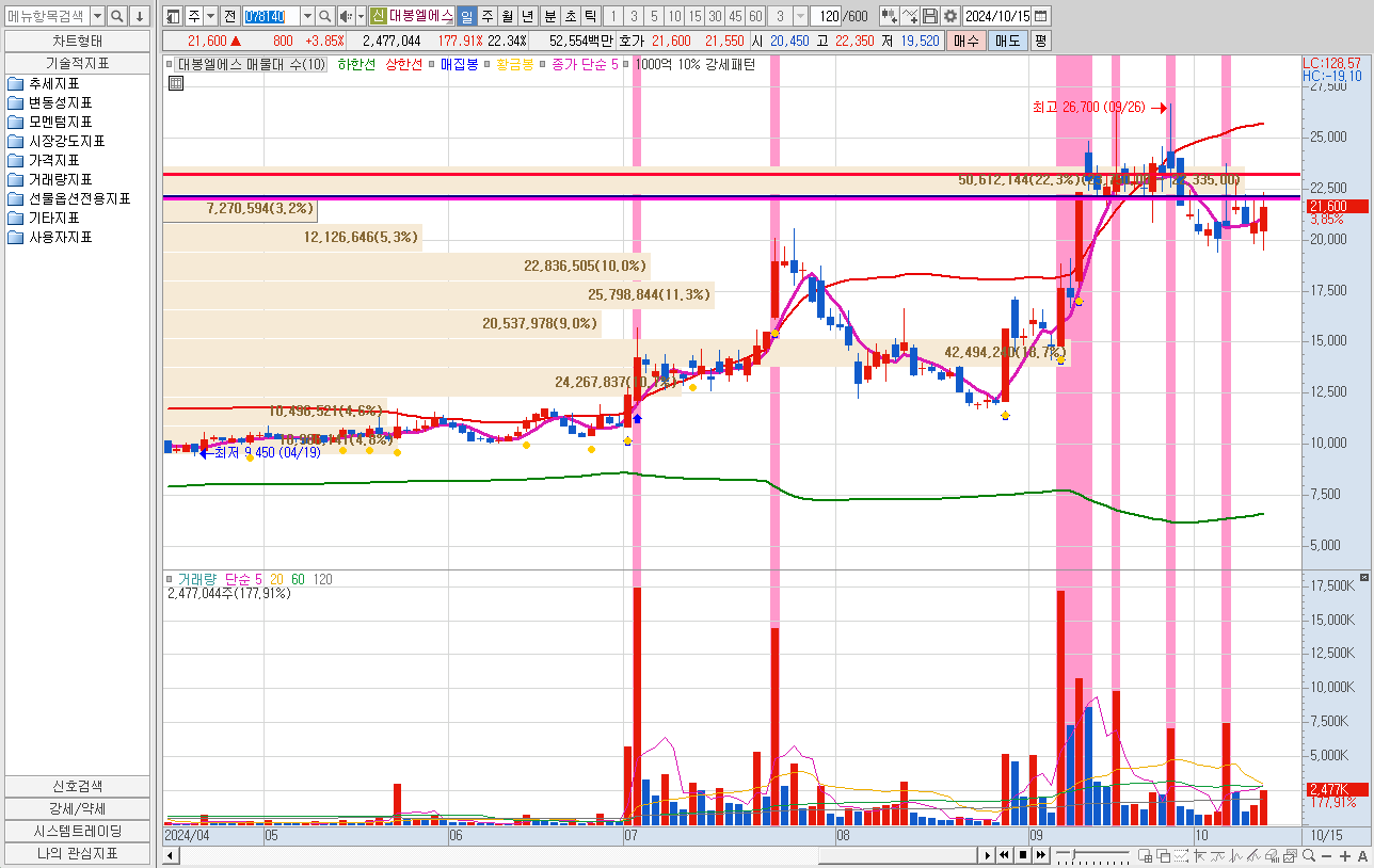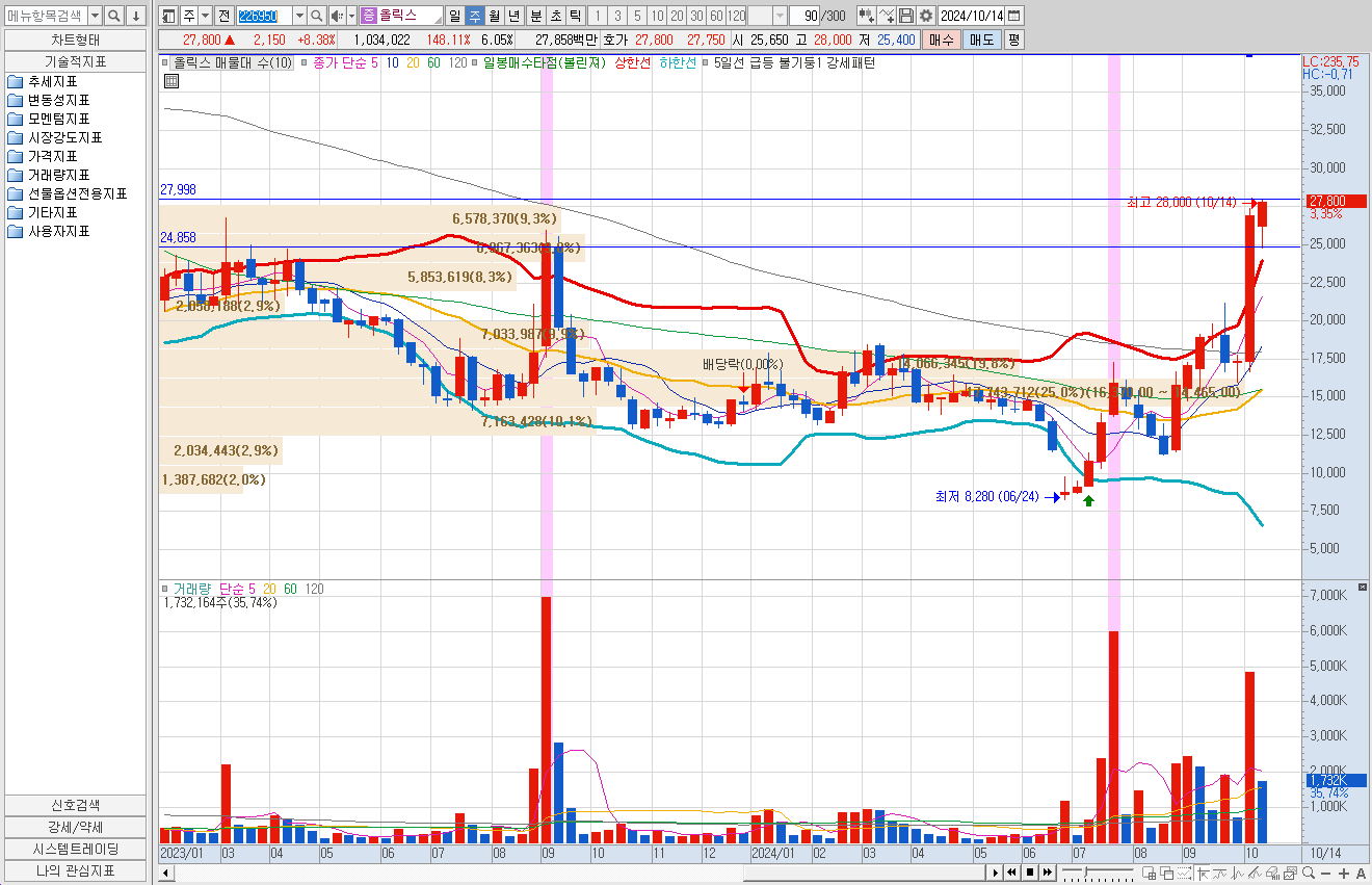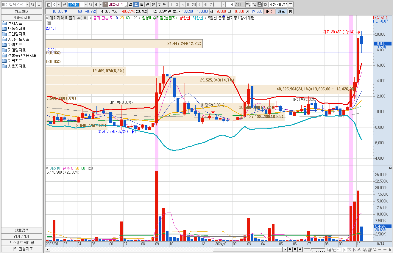 지난 주 조건검색식에 나온 종목은 올릭스, 대화제약, 대명소노시즌 3종목이다.