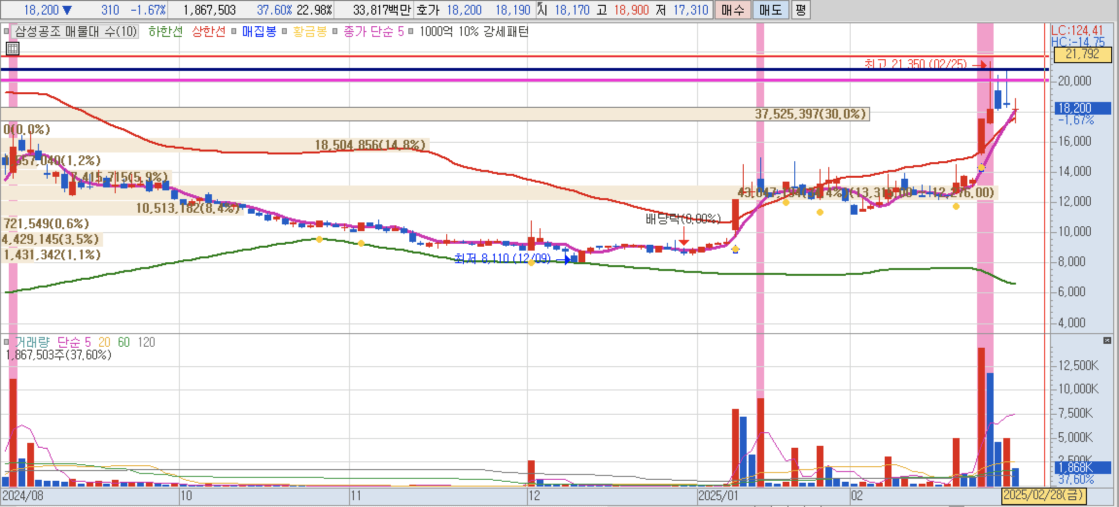 -삼성공조: 지난 주에 엔비디아 '블랙웰' 발열 잡기 위해 국내 액침냉각 기업과 협력 추진 가능성 기사가 나오면서 수급이 들어왔다. 18,200원에서 차주엔 충분히 21,700원까진 올라갈 수 있으니 대기하고 있으면 좋을 듯하다.