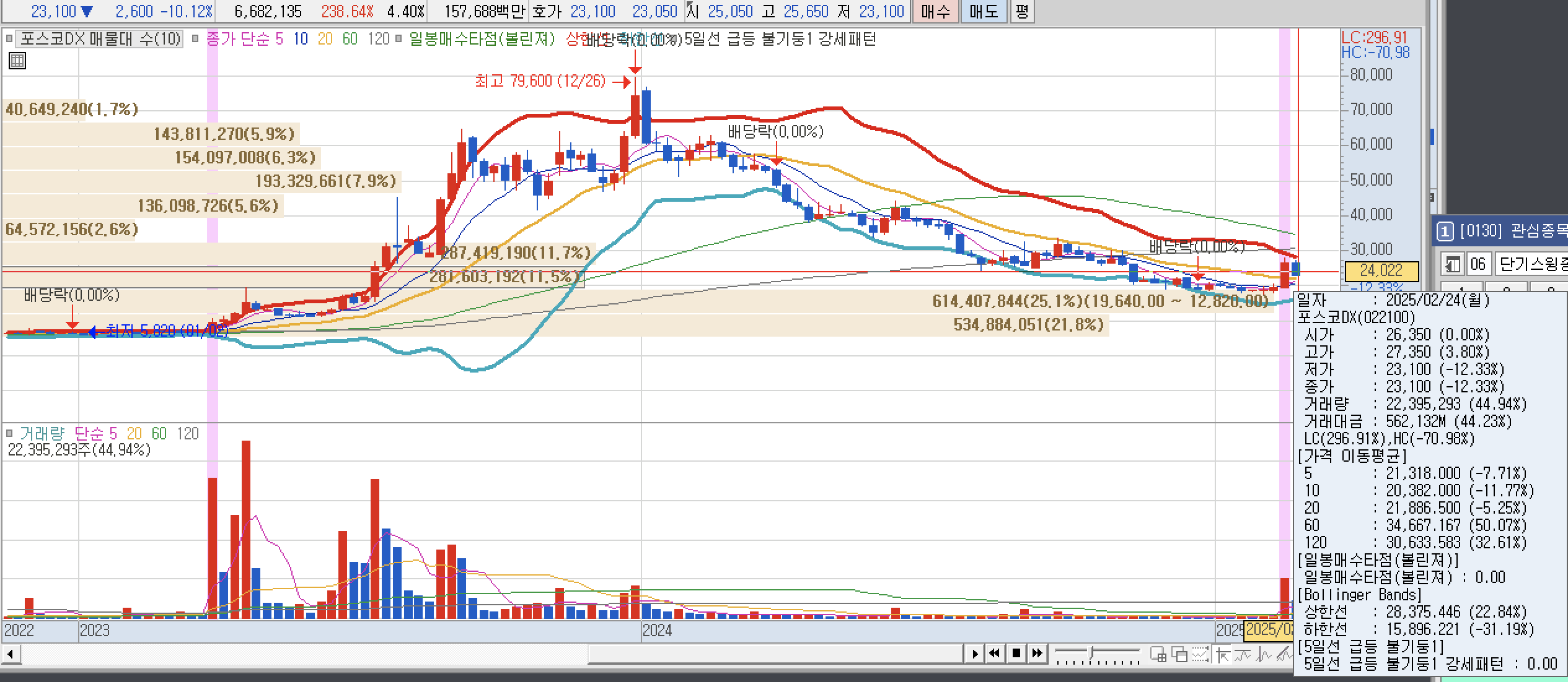 -포스코스틸리온:위 포스코DX와 같은 상황이다. 충분히 저점에서 매수세가 들어왔고 지지를 받고 우상향으로 바뀐 모습이다. 하지만 옆으로 간다면 시간이 걸릴 수 있다.