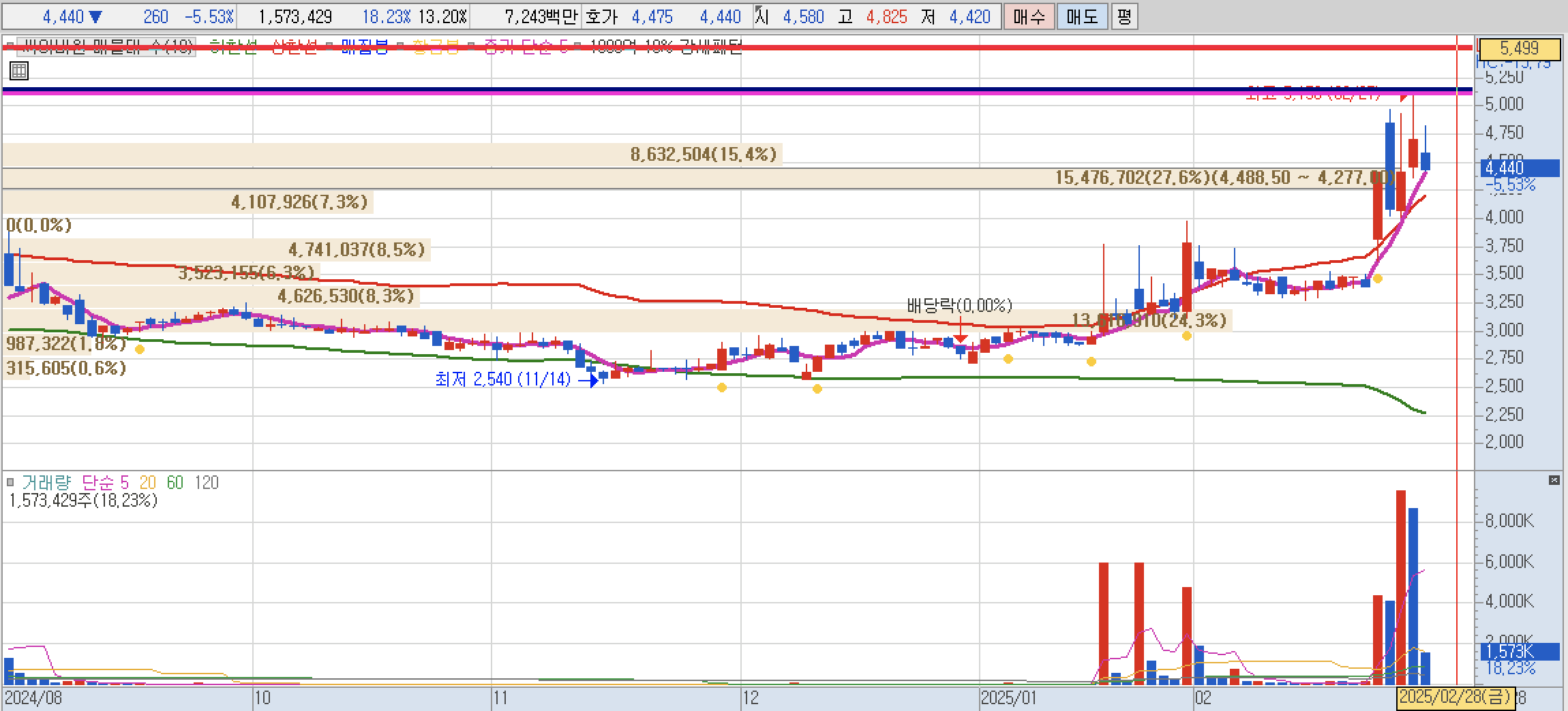 현재 3,645원이다. 바이오주는 언제나 시세를 주면 익절을 하고 나와야한다. 언제 악재나올지 모르기 때문에 그렇다. 27일에 매집봉이 나왔다면 4,300원까지 올리면 바로 익절을 하고 나오면 좋을 것 같다. 현재 위치가 지지를 하고 매물소화 후 다시 올릴 수 있다고 생각한다.