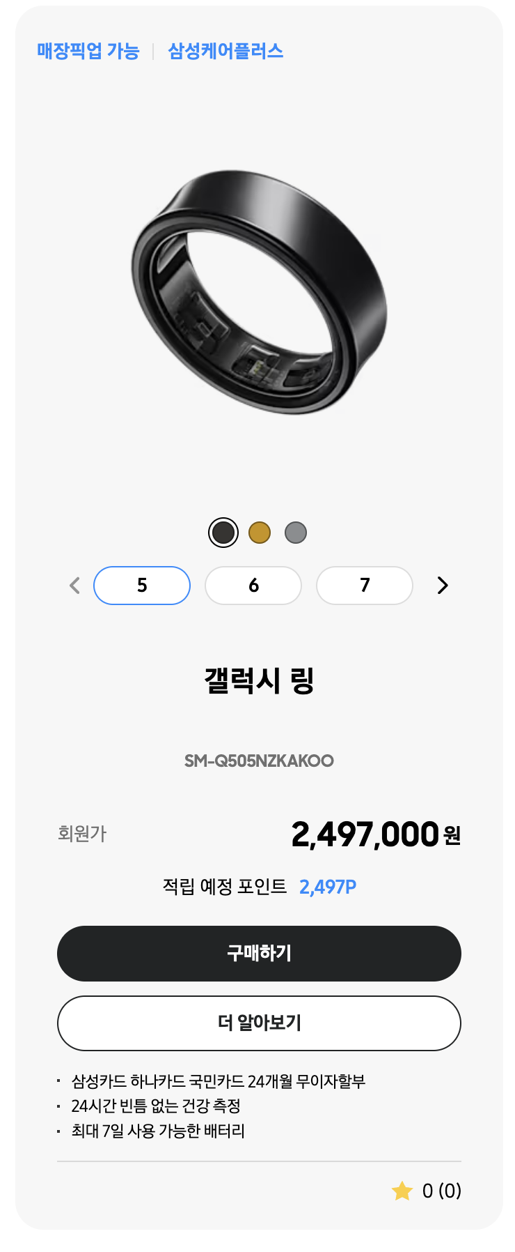 삼성전자는 이날 '갤럭시Z폴드6·Z플립6'와 함께 '갤럭시링', '갤럭시워치7·워치울트라', '갤럭시버즈3·버즈프로' 등도 사전 판매를 시작한다. 특히 삼성전자의 최첨단 센서 기술이 집약된 스마트반지 '갤럭시링'이 고객들에게 어떠한 평가를 받을지 귀추가 주목되고 있다. 7월 12일부터 사전예약을 받으니 관심이 있는 분이라면 삼성닷컴이나 여러 경로를 통해 예약을 하면 좋은 혜택으로 구매가 가능할 것 같다.